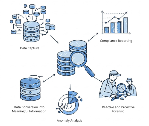 Análisis forense proactivo. Este tipo de análisis forense le ofrece visibilidad de toda la actividad de la base de datos. Tiene múltiples objetivos, pero el más importante es desarrollar controles. Sin una comprensión sólida de lo que ocurre en la base de datos, es imposible diseñar informes de cumplimiento, alertas de anomalías o incluso comprender las amenazas a las que se enfrenta.