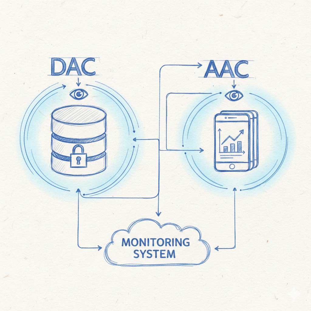 Así, mientras que la base de datos puede verlo todo, la aplicación añade otra capa de visibilidad invaluable. Comparemos el Control de Actividad de la Base de Datos (DAC) y el Control de Actividad de la Aplicación (AAC): dos sistemas independientes, cada uno valioso por sí mismo. Juntos son más potentes, pero ¿en qué se diferencian y qué defensas ofrecen?